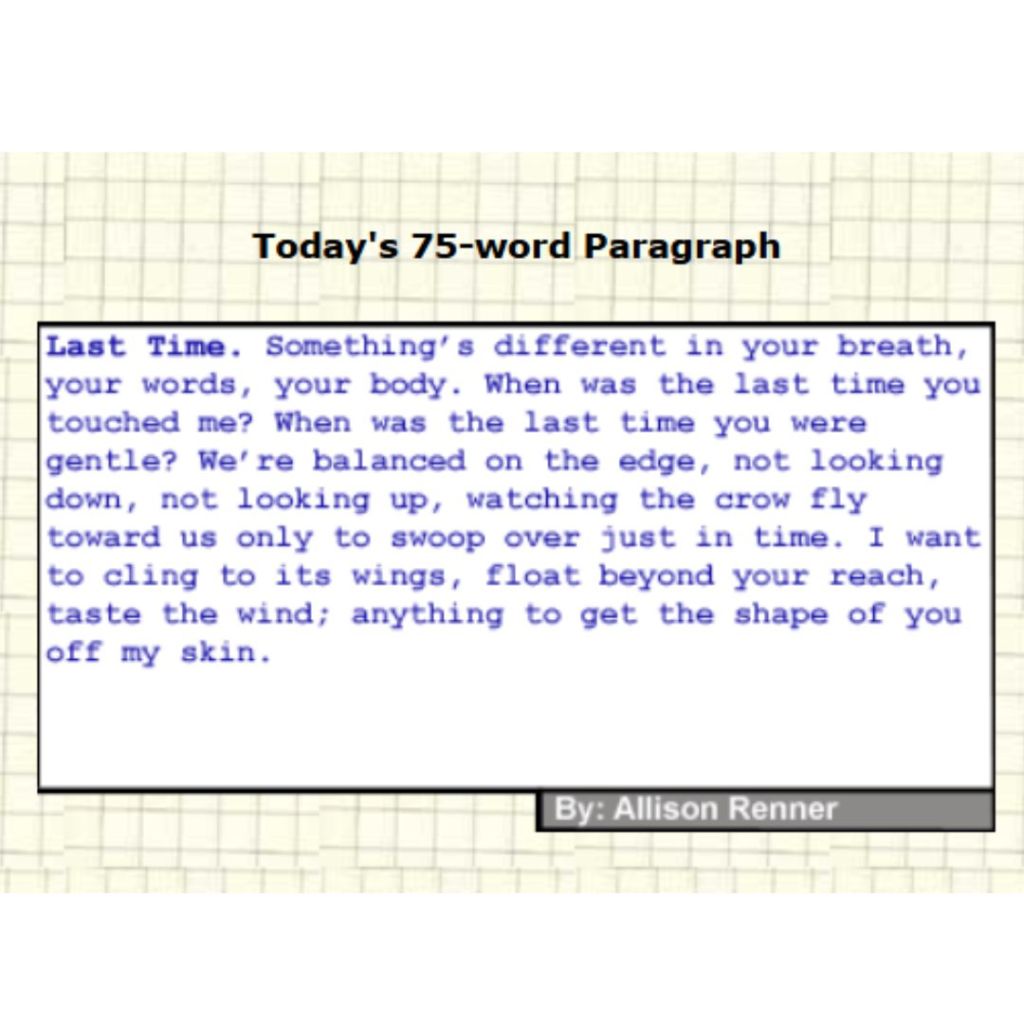 I’m thrilled to have a 75-word story at Paragraph Planet today. (The link takes you to the author archives, where you can click on my name and read my piece!)