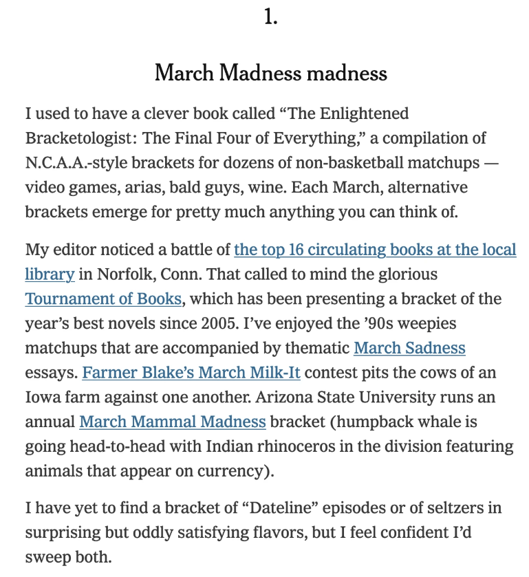 Update: March Sadness was mentioned in the New York Times!